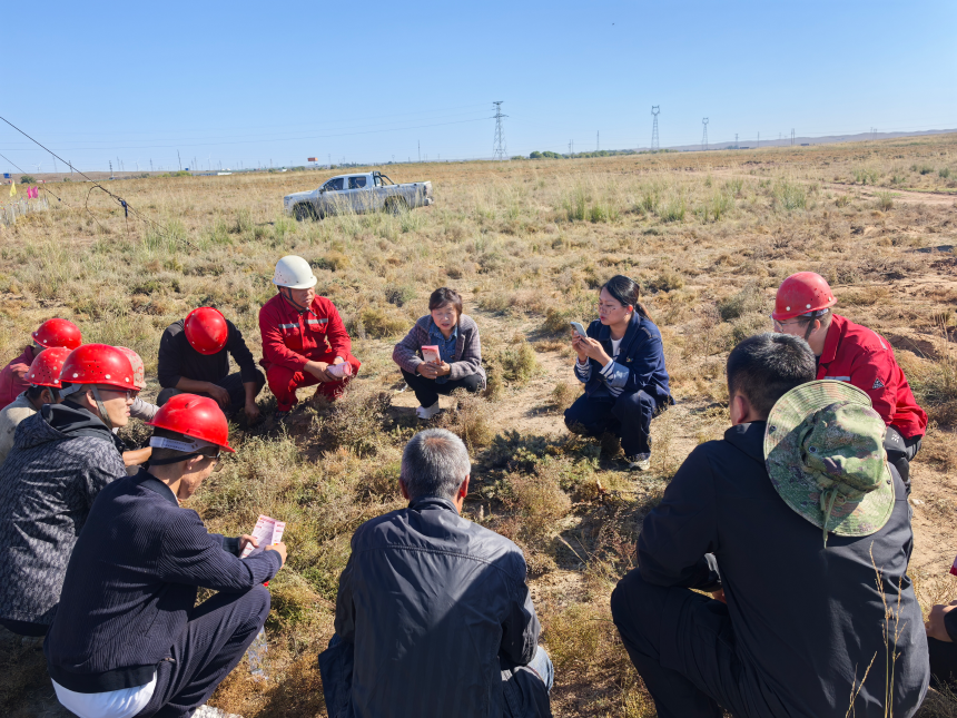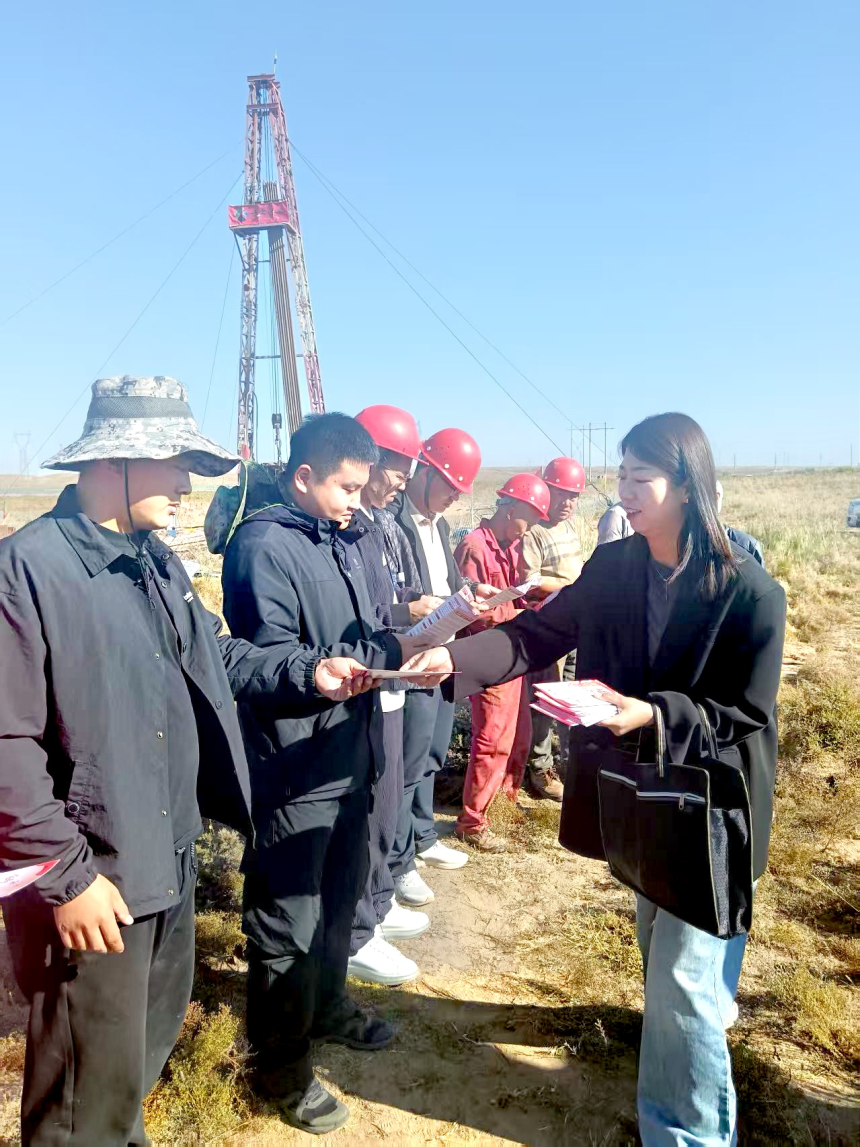 深入野外一线,走访慰问职工。9月24日在阿尔巴斯二矿补充勘探项目部,慰问组详细了解一线职工工作生活情况,为他们送去充电宝、行李包等物资,对项目团队的辛勤付出表示充分肯定。在走访慰问期间,组织一线职工开展“中华民族共同体知识微课堂”,发放学习材料,由带队领导宣讲“六句话事实和道理”,通过分享地质工作中各民族同事团结协作小故事,强化理论认知与情感共鸣。
